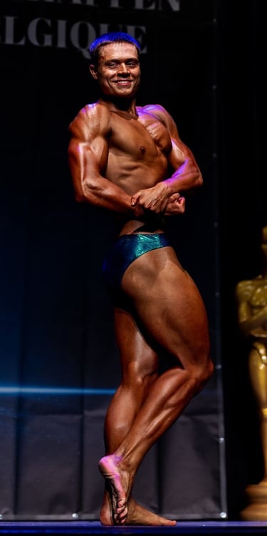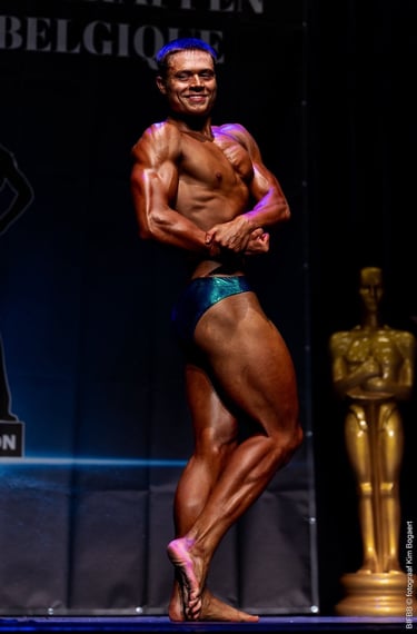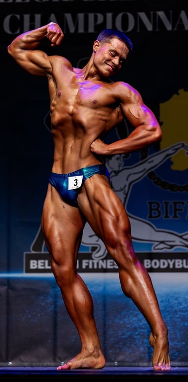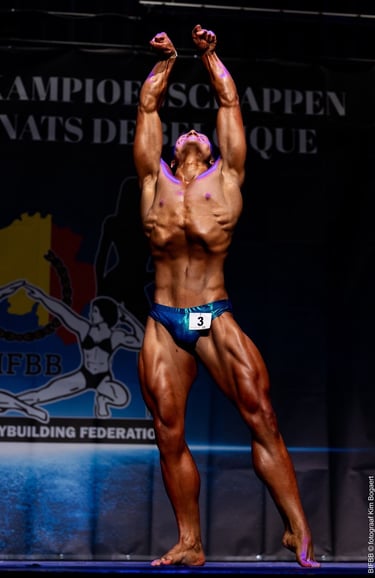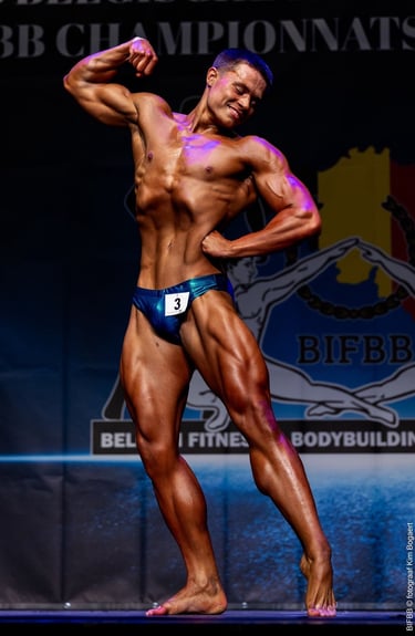 Met een indrukwekkende vorm, een messcherpe conditie en een aanwezigheid die de aandacht trok, werd hij op slechts 18-jarige leeftijd Belgisch kampioen Classic Physique -18.